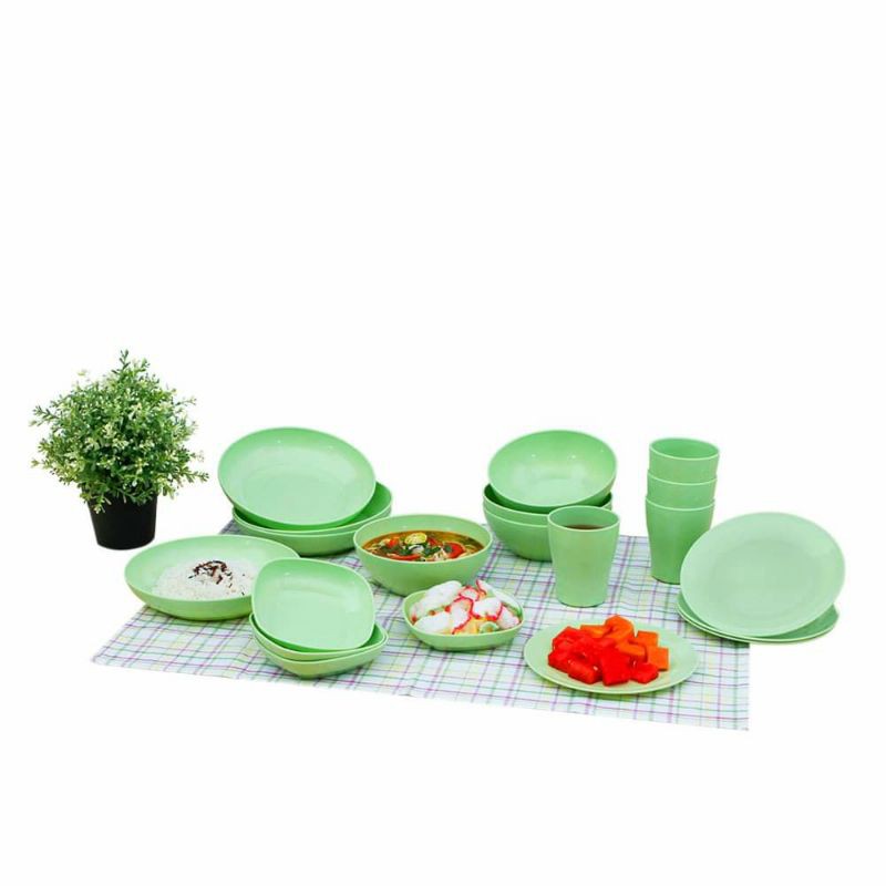 *EKO is Back dan Makin ManTulll alias Mantap Betulll!!*Dinner set super komplit yang membuat hidangan apapun jadi semakin lahap disantap bersama orang tersayang.Peralatan makan yang ringkas dan hemat ruang penyimpanan, karena piring, gelas, dan mangkok mudah ditumpuk. Eko Dinner Set of 20 Pcs ini cocok jadi teman setia di meja makan Anda.Cocok buat kado, tambah koleksi Anda atau keluarga kecil dan pasangan yang baru memulai rumah tangga.Jadikan momen makan malam lebih hangat dan praktis bersama EKO DINNER SET OF 20 PCS*1 Set Eko Dinner terdiri dari:*- 4 Piring Cekung, Diameter: 8 inch- 4 Piring Ceper, Diameter: 7 inch- 4 Piring Kotak, Diameter: 5 inch- 4 Mangkuk, Diameter: 6 inchi Kapasitas: 780 ml- 4 Gelas, Kapasitas: 320 ml*Keunggulan Produk Kece EKO:*- 1 set dengan paket komplit (Piring dengan 3 bentuk berbeda, mangkuk, dan gelas)- Mudah ditumpuk sehingga hemat ruang penyimpanan- Material Plastik PP5 dan Food Grade, aman untuk berbagai jenis makanan- Microwave safe*PENTING* Packing 1 Set hanya menggunakan bubblewrap Packing 3 Set menggunakan bubblewrap dan BoxGARANSI PENGIRIMAN:Barang selalu dicek sebelum pengiriman oleh penjual dan pihak ekspedisi. Kami akan bertanggung jawab jika produk yang anda terima rusak karena pengiriman tanpa asuransi, dengan ketentuan sebagai berikut: ✅Harap membuka paket di depan kurir dan lakukan pengecekan produk, jika produk pecah atau rusak silahkan mengirimkan klaim dengan menunjukan data kurir pengantar (Nama,Hp, dan Foto). Tidak cek didepan kurir dan Tidak melengkapi data tersebut mohon maaf TIDAK BISA KLAIM. Batas Klaim 1 x 24 jam dr produk diterima sesuai catatan eskpedisi.✅ Proses Klaim, Wajib mengirimkan produk yang rusak ke penjual, setelah produk rusak diterima, penjual akan mengirimkan produk pengganti✅Biaya pengiriman pengembalian produk selama proses klaim ditanggung sepenuhnya oleh pembeli. Baik saat pengembalian barang rusak ke pembeli dan dari pembeli ke penjual untuk pengiriman barang pengganti.Membeli produk dianggap sudah membaca keterangan yang ada di deskripsi .Pengiriman menggunakan jasa pihak ketiga (ekspedisi) jika produk hilang, rusak, lambat diterima bukan kesalahan penjual. Karena 100 persen penanganan oleh pihak ekspedisi. #elindia #tds #tdsdusdusan #tasikmalaya #piringset #alatmakanset #set #technoplast #mangkuk #mangkukset #dusdusan #dusdusantasikmalaya #setmu